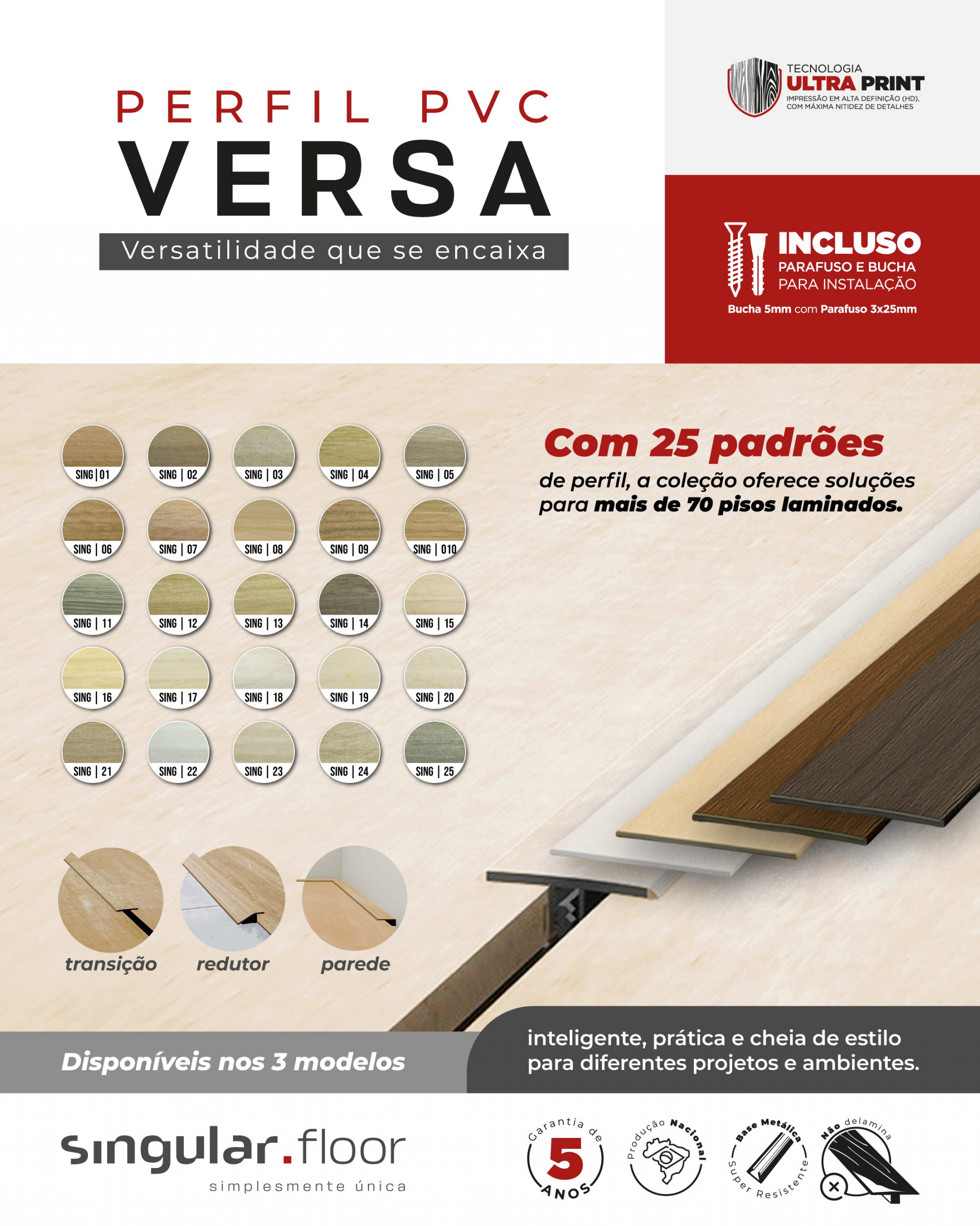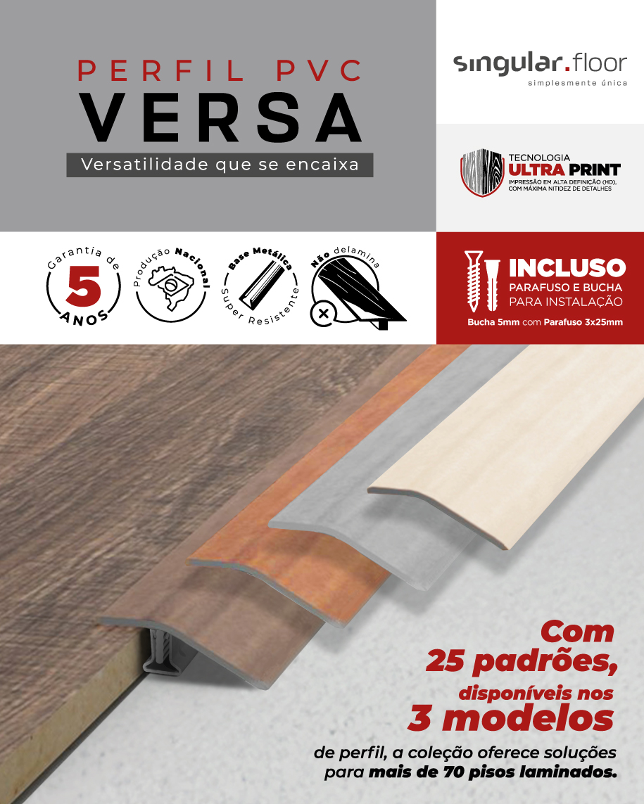 Apresentamos o Versa - Perfil de PVC da Singular Floor — Criada para valorizar a versatilidade do seu projeto!